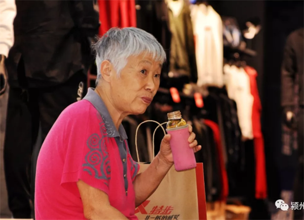 老头子接过提袋,整个购物过程就这样结束了,看起来老两口很满意。